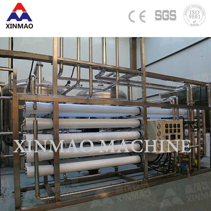 反滲透(簡稱RO)是膜分離技術(shù)的一種,它依靠反滲透膜在壓力下使溶液中的溶劑和溶質(zhì)分離的特性工作。“滲透”是一種物理的現(xiàn)象,逆滲透就是在含有鹽及各種細微雜質(zhì)的水中(即原水)施加比自然滲透的更大的壓力,使水從濃度高的一方逆滲透濃度低的一方,而原水中絕大多數(shù)的細菌雜質(zhì)、有機物、重金屬、細菌、及其它有害物質(zhì)等都經(jīng)污水口排放。鑫茂機械專業(yè)生產(chǎn)的