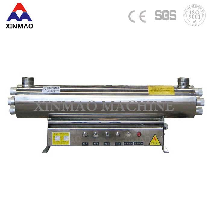 被處理水由設(shè)備進(jìn)水口進(jìn)入反應(yīng)器,按一定的速度從反應(yīng)腔流過,水中的微生物受到高強(qiáng)度的UVC照射,微生物DNA、RNA內(nèi)部結(jié)構(gòu)遭到破壞,不能復(fù)制,從而在不使用任何化學(xué)藥物的情況下,達(dá)到國家檢驗(yàn)標(biāo)準(zhǔn)。產(chǎn)能:1-100噸/小時(shí)