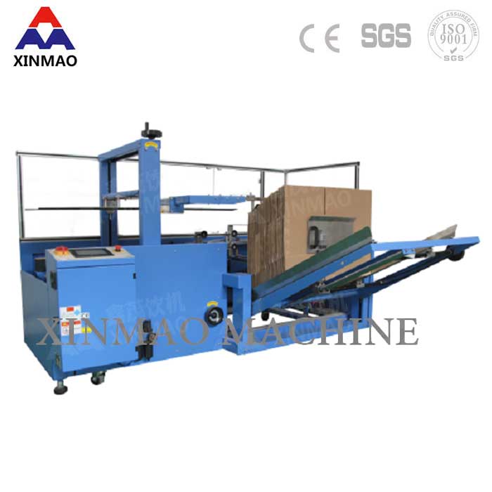 本機(jī)集開箱、裝箱、封箱于一體,又稱三合一體裝箱機(jī),多功能裝箱機(jī)