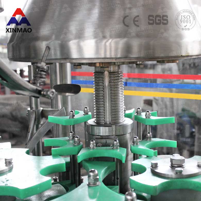 灌裝機(jī)的封口機(jī):旋蓋機(jī)是乳飲品灌裝機(jī)械中精度超高的單機(jī),對(duì)設(shè)備運(yùn)行的可靠性、產(chǎn)品的次品率影響極大,設(shè)有旋蓋機(jī)進(jìn)瓶檢測(cè)開(kāi)關(guān),與落蓋導(dǎo)軌與撥蓋盤(pán)連接處的鎖蓋氣缸連鎖控制瓶蓋的排出,保證無(wú)瓶時(shí)停止喂蓋,減少用戶蓋子的損耗。