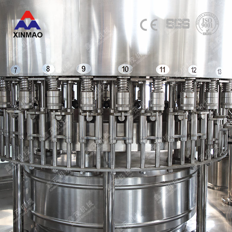 純凈水灌裝生產(chǎn)線采用了先進(jìn)的OMRON 可編程變頻器(PLC)控制機(jī)器的自動(dòng)運(yùn)行,進(jìn)瓶鏈道采用變頻調(diào)速,與主機(jī)變頻相互配合使進(jìn)瓶運(yùn)行更穩(wěn)定可靠。純凈水灌裝生產(chǎn)線光電檢測(cè)哥部件的運(yùn)行狀況,自動(dòng)化程度高,操作簡(jiǎn)便。在此基礎(chǔ)上,本機(jī)更變灌裝部分,可以形成低真空灌裝方式。