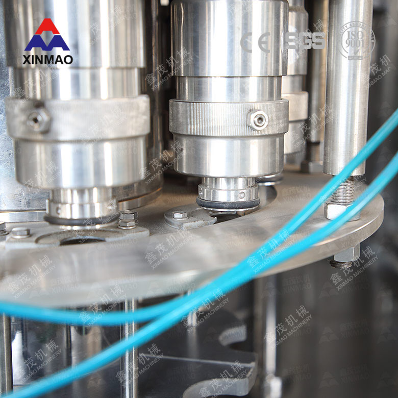 全自動(dòng)三合一飲用水灌裝機(jī)械灌裝部分。